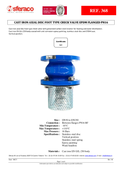 Axiální konstrukce s pružinou umožňuje malý tlakový spád a rychlou odezvu klapky. Armatura je určena výhradně pro vertikální montáž a musí být instalována ve směru toku vyznačeném šipkou na tělese.