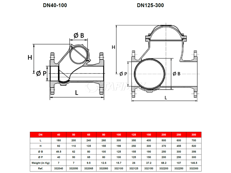 - Rozsah jmenovitých průměrů: DN 40 – DN 300